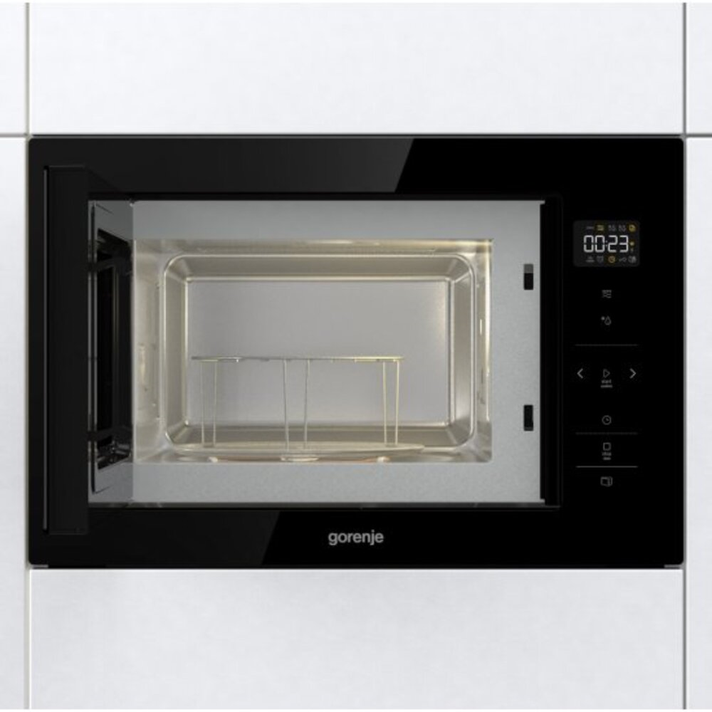 С помощью таймера можно установить определенное время работы до 95 минут. На фронтальной панели расположены дисплей и сенсорные кнопки управления. Технология очистки паром расщепляет жир и загрязнения для более простого ухода за внутренними стенками. В комплекте с Gorenje BM251SG2BG поставляются поворотное стеклянное блюдо и решетка-гриль.
