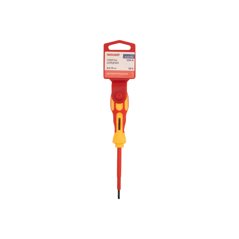 Шлицевая отвертка электрика REXANT SL 3х75 мм 12-4711 предназначена для электромонтажных работ, монтажа/демонтажа крепежных соединений.