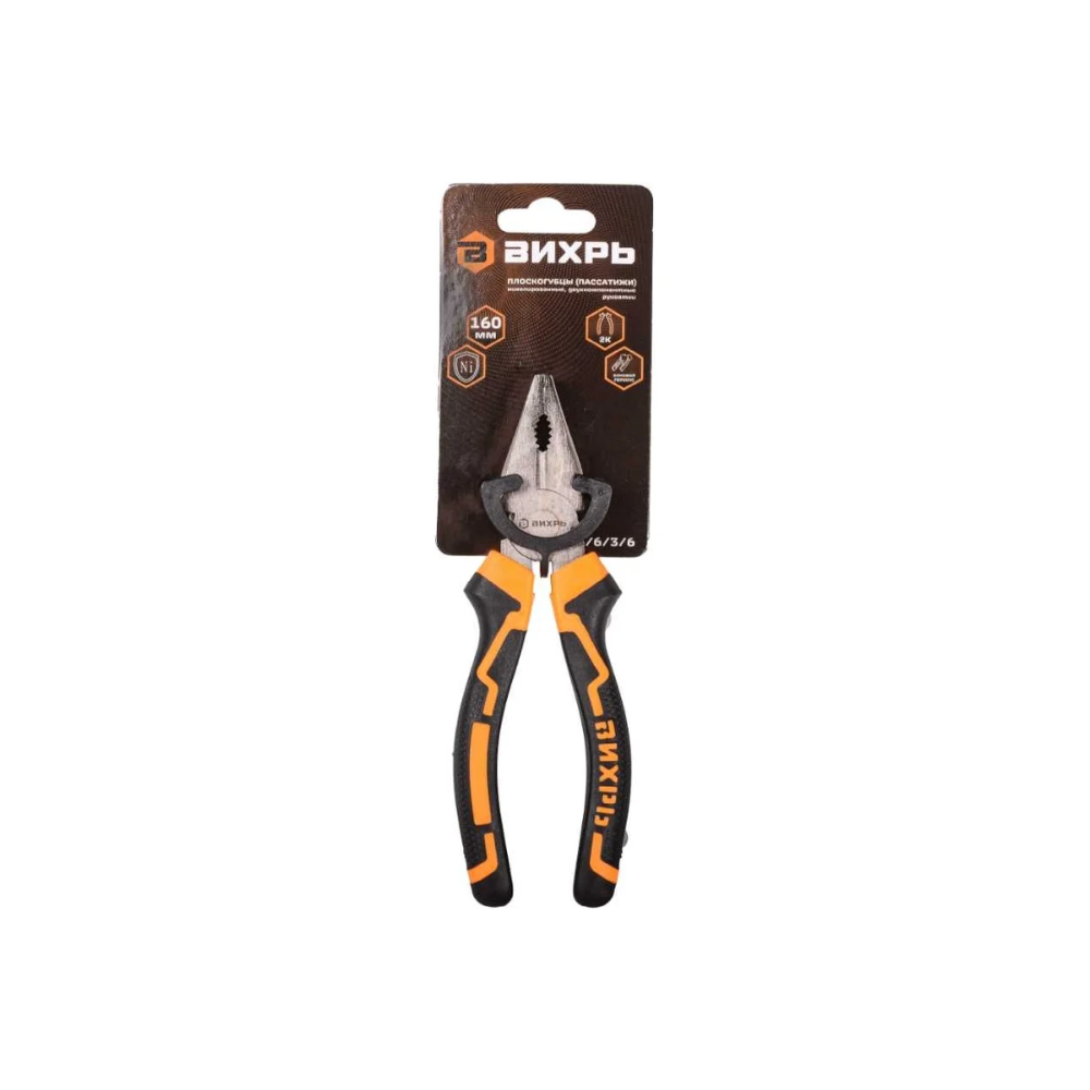Плоскогубцы 160мм никелированные,двухкомпонентные рукоятки Вихрь