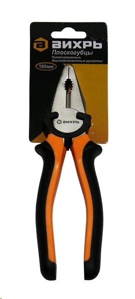Плоскогубцы (пассатижи),180мм.,никелированные,двухкомпонентные рукоятки Вихрь