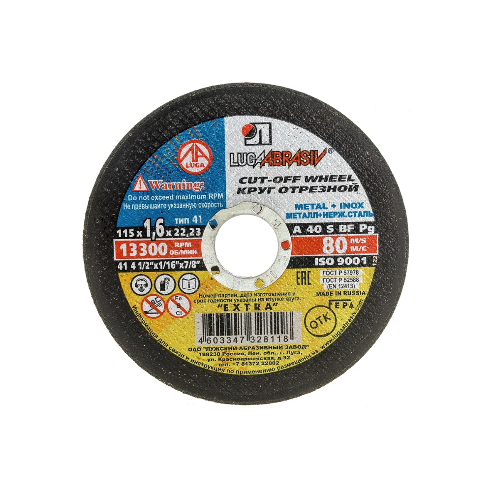 Диск отрезной 115х22х1,6 мм, А40 Луга D11001152216000 отлично подходит для резки деталей и изделий из нержавеющей стали.