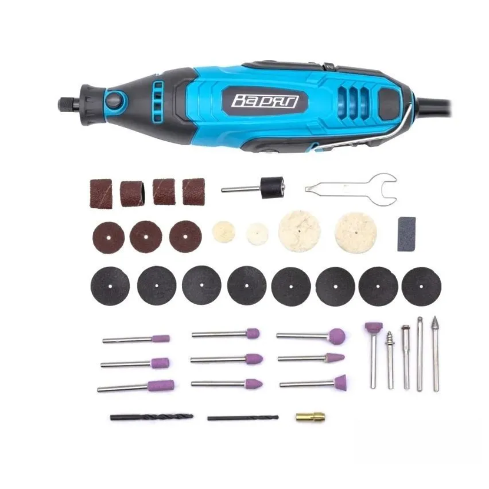 Гравер Варяг ЭГ-200 c надежным электродвигателем и эффективной системой охлаждения, способен выполнять широкий спектр работ: резка, шлифовка, зачистка, гравировка изделий из металла, стекла, керамики.Эта модель отличается высокой производительностью и значительным рабочим ресурсом.В комплект поставки инструмента входят 40 сменных аксессуаров, которые позволят выполнять широкий спектр работ.