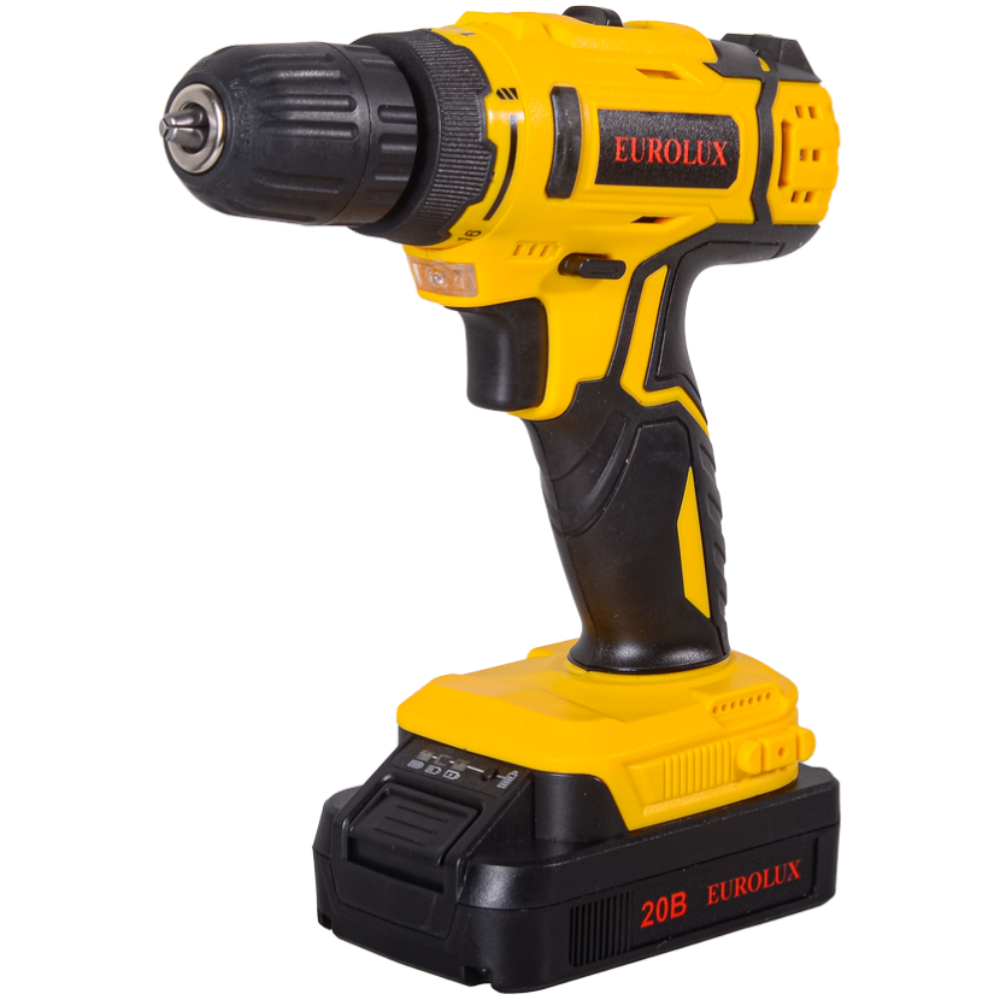 Дрель-шуруповерт аккумуляторная Eurolux ДА-20/2Li – компактный автономный инструмент для сверления отверстий в деревянных, пластиковых и металлических поверхностях, закручивания крепежей. Аккумулятор Li-Ion емкостью 1,5 А*ч полностью заряжается в течение 1 ч. Напряжение 20 В обеспечивает крутящий момент до 35 Нм. Инструмент имеет 2 рабочие скорости до 400 об/мин и 1400 об/мин, позволяющие регулировать интенсивность вращения сверла или биты. Быстрозажимной патрон обеспечивает удобную замену оснастки диаметром 0,8-10 мм. Максимальная ширина отверстий в древесине составляет 30 мм, в металлических заготовках – 12 мм. Реверсивный режим позволяет легко выкручивать саморезы.