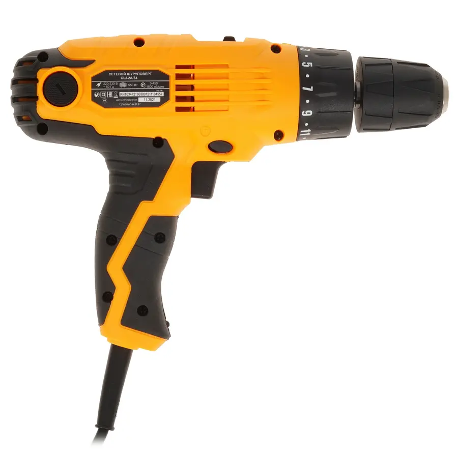 Для повышения удобства и точности работы реализована яркая подсветка. Комфортное удержание инструмента осуществляется благодаря рукоятке с прорезиненным покрытием. Дрель-шуруповерт Вихрь СШ-2А/34 подключается к электросети и обладает кабелем длиной 2 метра.