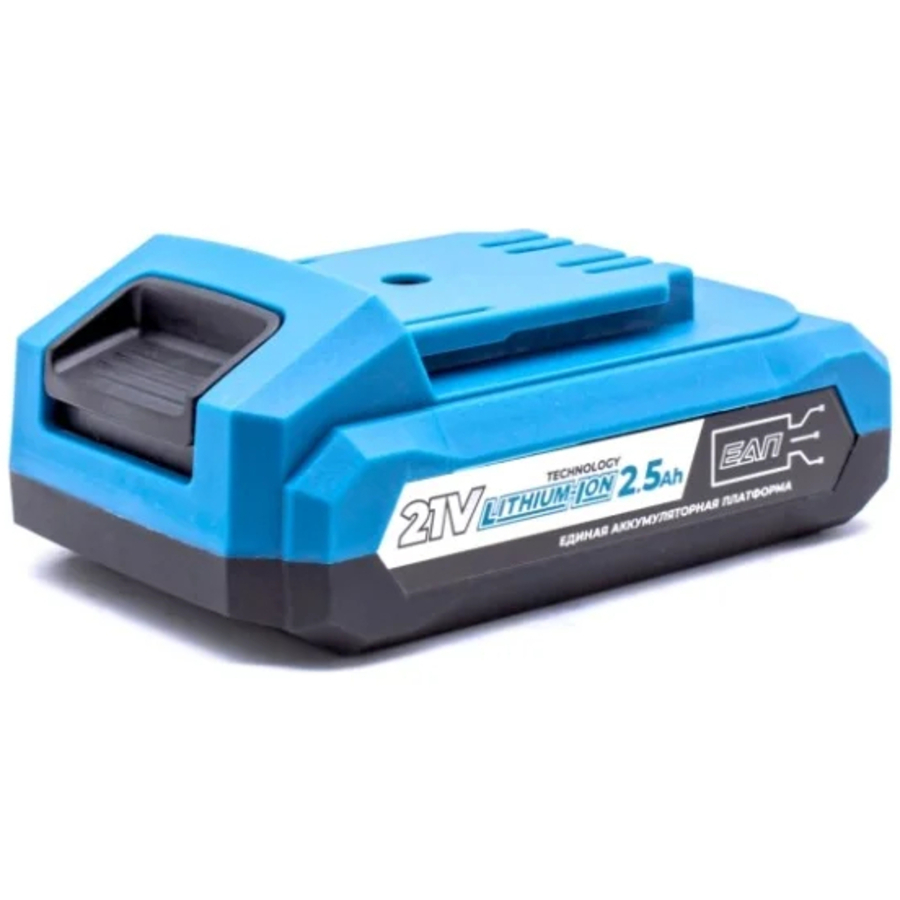ёмкость аккумулятора — 2,5 Ач;напряжение аккумулятора — 21 В; тип аккумулятора — литиево-ионный; оснащён индикатором уровня заряда;
