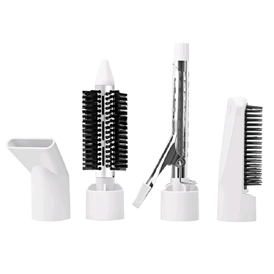 Круглая щётка с мягкой щетиной,Расчёска для укладки волос,Щипцы для завивки волос,Концентратор,Мощность 650-800 Вт,3 режима нагрева,Вращение шнура на 360°,Защита от перегрева,Петля для подвешивания,