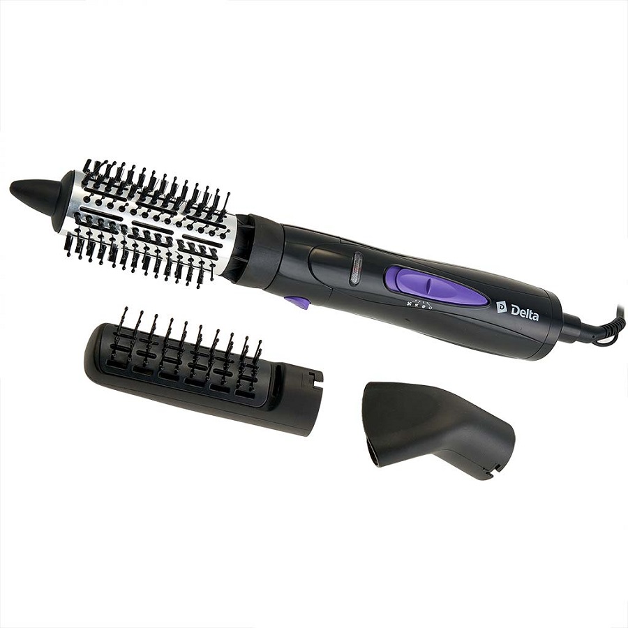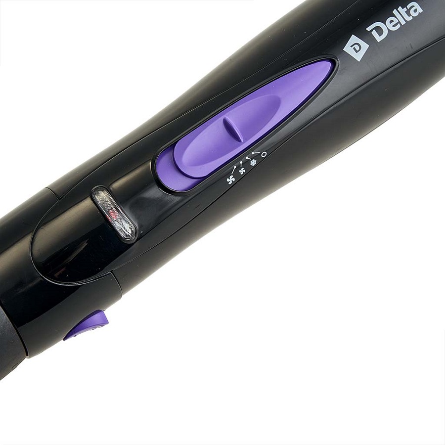 Концентратор за счет формирования направленного потока тщательно высушивает прядь волос от корней и до кончиков. Насадка с зубчиками расчесывает волосы. Круговая насадка-щетка выравнивает пряди и создает прикорневой объем. В фен-щетке DELTA DL-0432R реализована технология защиты от перегрева. Сетевой шнур с шаровым вращением не спутывается и не ограничивает движения во время укладки.
