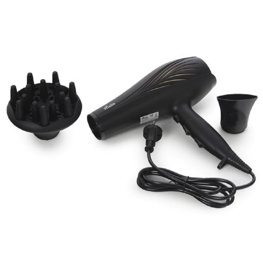 Фен Ardin Hd-247, 2000 Вт, 3 режима, 2 скорости, черный, ионизация, подача холодного воздуха,Насадки диффузор, концентратор,Количество температурных режимов 3,