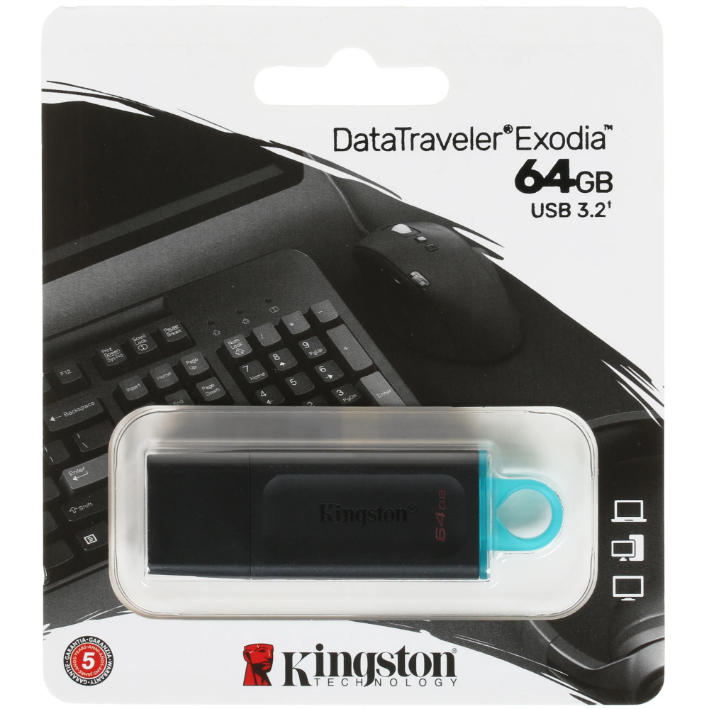 Память USB Flash Kingston DataTraveler Exodia обладает объемом 64 ГБ, что предоставляет возможность хранения весьма большого количества документов, музыки, фото, видео и прочего контента. Интерфейсный разъем USB версии 3.2 Gen 1 обеспечивает высокие показатели быстродействия и простое подключение к настольному компьютеру, ноутбуку, телевизору и другим устройствам с поддержкой соответствующего порта. Накопитель Flash Kingston DataTraveler Exodia выполнен в компактном пластиковом корпусе со съемным защитным колпачком и креплением в виде кольца для простой фиксации на брелке.