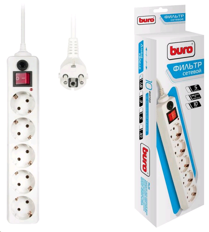 ------Buro 500SH-1.8-W 1.8м (5 розеток) белый (коробка)