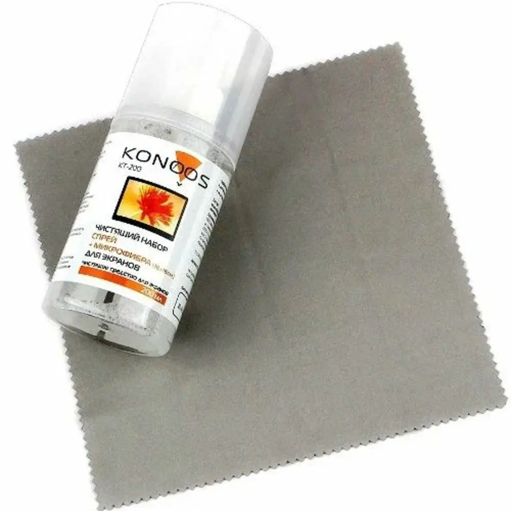 Набор Konoos KT-200 – комплект, предназначенный для эффективного очищения экранов ваших мобильных устройств, а также мониторов и телевизоров. Чистящий спрей абсолютно безопасен, для отличного результата его требуется совсем немного, так что емкости в 200 мл хватит вам на длительное время использования. И никаких пятен и разводов, а также ворсинок на очищенных экранах – в набор Konoos KT-200 входит салфетка из микрофибры многоразового использования. Набор не даст пыли оседать на очищенной поверхности в течение длительного времени.