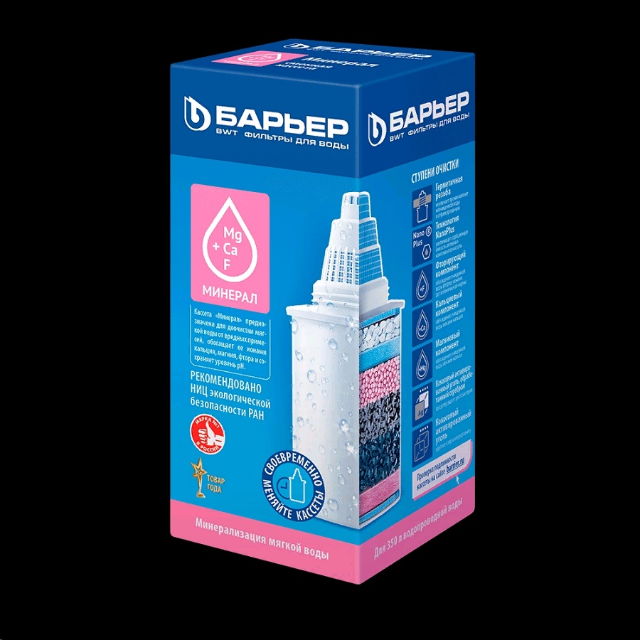 Сменная кассета для фильтра БАРЬЕР Минерал предназначена для специальной очистки мягкой воды: с одной стороны, она удаляет тяжелые металлы, железо, хлор, с другой – восполняет бедный минеральный состав мягкой воды, обогащая ее ионами кальция, магния и фто