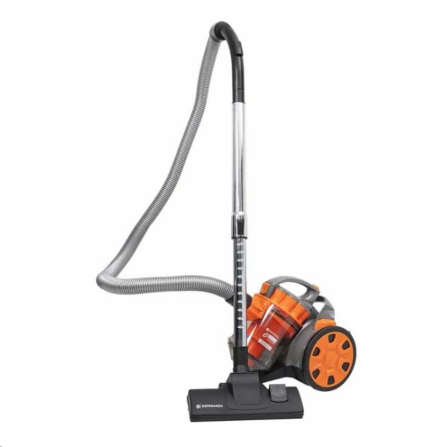 Пылесос ESPERANZA VC-C201 в корпусе оранжевого цвета оборудован контейнером для сбора пыли объемом 1,8 л. Мощность мотора 2200 Вт, мощность всасывания — 200 Вт. В процессе работы пылесос создает уровень шума мощностью до 79 дБ. Кнопки управления располагаются на корпусе. Сетевой кабель длиной 5 м сматывается автоматически. Корпус пылесоса изготовлен из пластика. Трубка стальная.