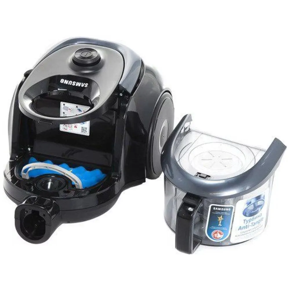 Пылесос Samsung SC18M2150SG предназначен для сухой уборки помещения и в качестве пылесборника имеет циклонный фильтр, объемом 1,5 литра. Модель имеет шнур, длиной 6 метра, а также удобную телескопическую трубку. Это обеспечивает пылесосу радиус действия до 9 метров.