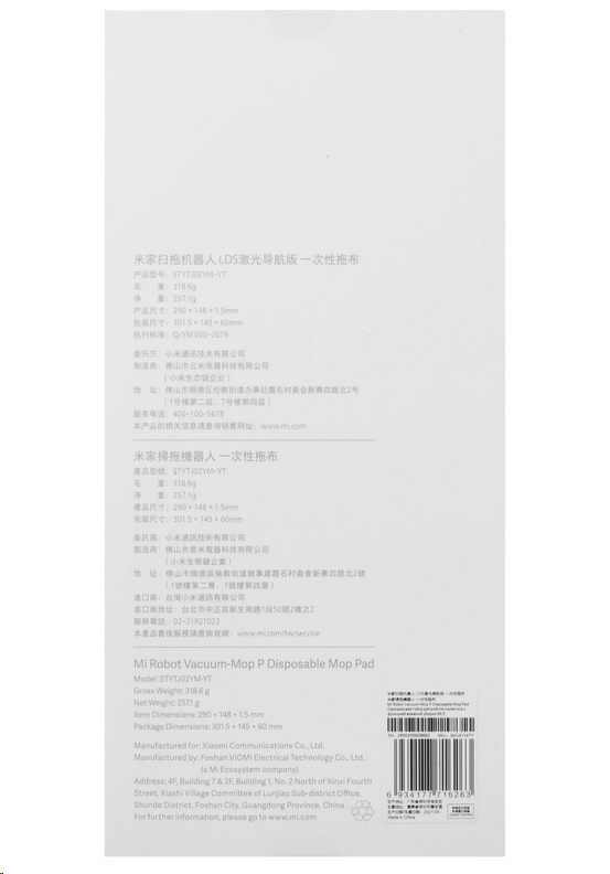 Робот-пылесос Xiaomi Mi Robot Vacuum-Mop P салфетка 30шт (SKV4114TY)