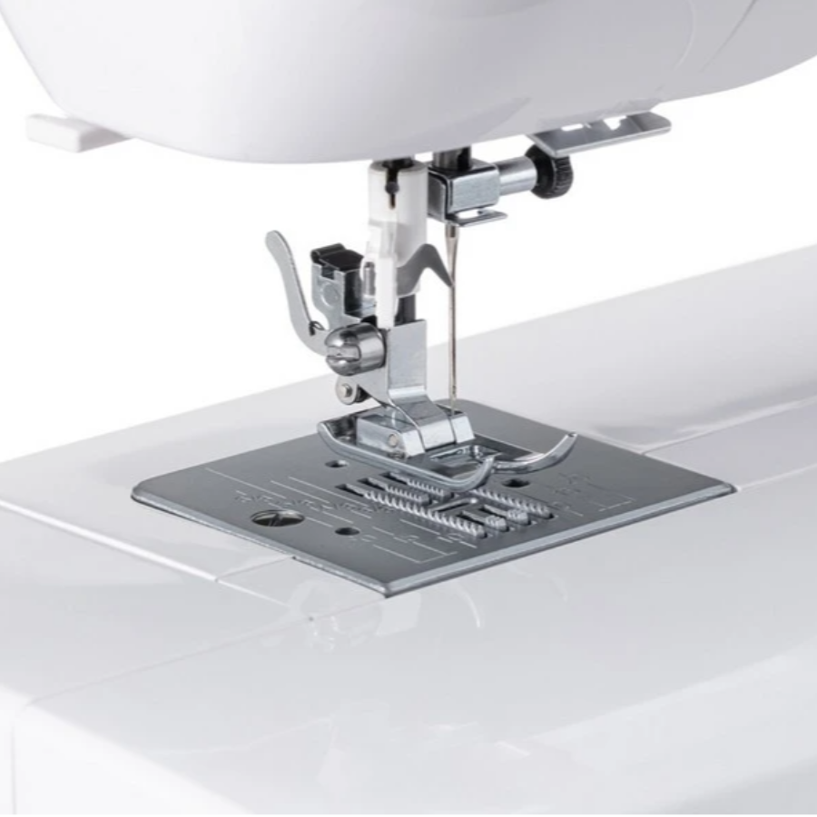 Особенности: встроенный нитевдеватель, зигзаг, декоративные, трикотажные, оверлочные строчки, петля полуавтомат.