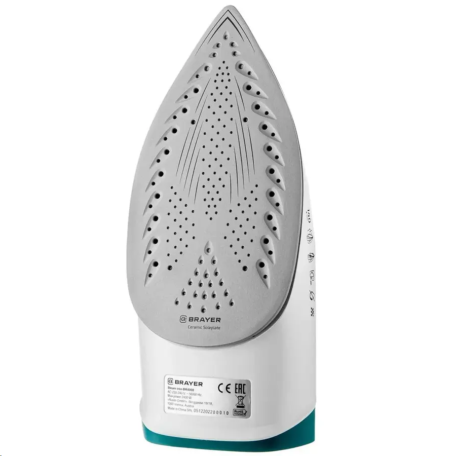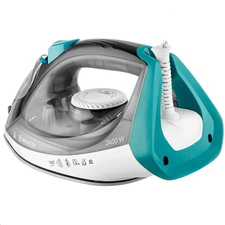 BRAYER BR4008 оснащен емкостью на 330 мл воды, удобной для удержания закрытой ручкой и шаровым креплением для защиты от перекручивания кабеля. Функция самоочистки не дает накипи засорять и повреждать устройство. Система автоотключения срабатывает через 8 минут бездействия стоящего на подставке утюга или 30 секунд неподвижности в горизонтальном положении.