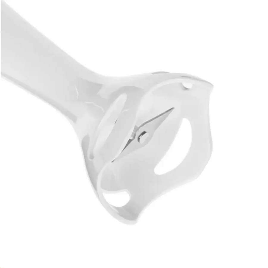 Погружная часть выполнена из пластика. Использовался прочный и качественный полимер, который не выделяет посторонних веществ. Острое металлическое лезвие за секунды измельчает ингредиенты.