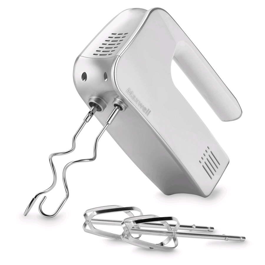 Maxwell MW-1359 — ручной миксер, предназначенный для: взбивания крема, приготовления соуса, вымешивания теста. Мощность: 300 Вт.,Число скоростей: 5,Количество насадок: 2. В комплекте — венчик для взбивания и крюки для замешивания теста.