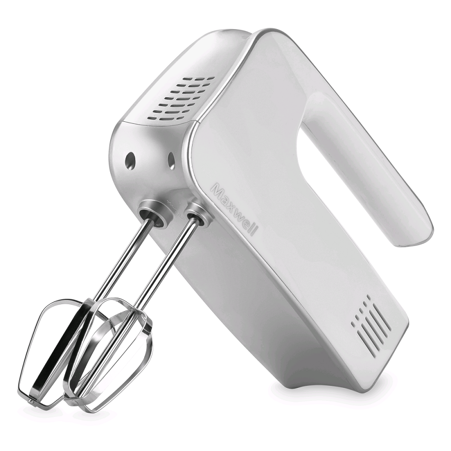 Maxwell MW-1359 — ручной миксер, предназначенный для: взбивания крема, приготовления соуса, вымешивания теста. Мощность: 300 Вт.,Число скоростей: 5,Количество насадок: 2. В комплекте — венчик для взбивания и крюки для замешивания теста. Насадки изготовлены из нержавеющей стали, менять их можно лёгким нажатием специальной кнопки.Цвет: белый.
