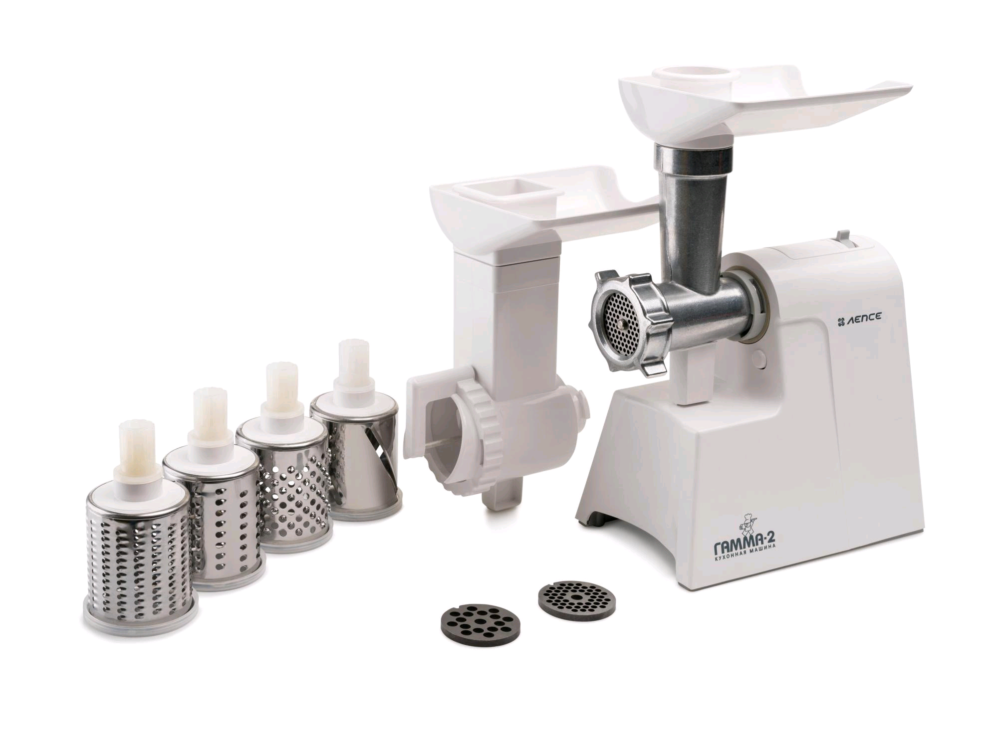350 Вт, 1.5 кг/мин, насадка-терка, диск для фарша (3 в комплекте), защита от перегрузки