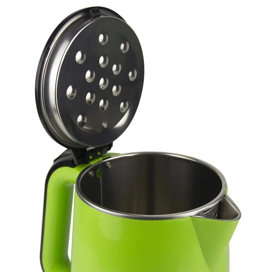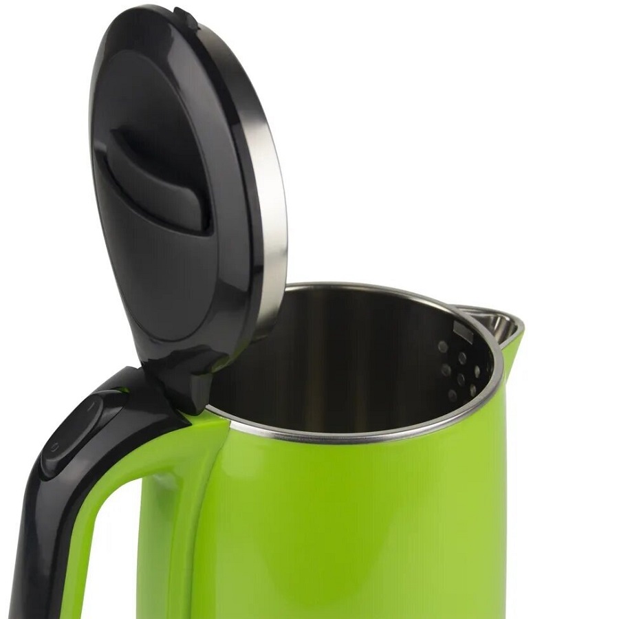 Объем: 2 л;.Мощность: 2000 Вт;.Материал корпуса: металл/пластик;.Двойные стенки: да;.Эффект термоса: да;.Тип управления: механическое;Защита от перегрева: да;Индикатор режима работы: да;Поворот на 360 градусов: да;Безопасность:автоматическое отключение при закипании, защита от включения без воды Кнопочное управление.