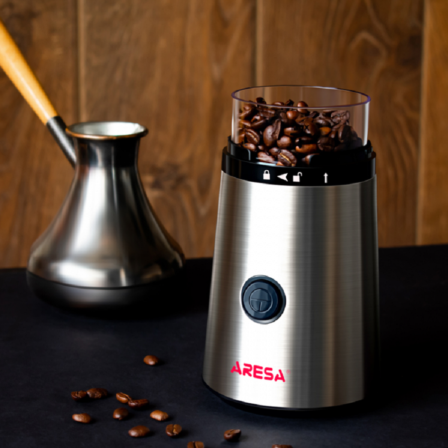 Кофемолка AR-3605,220-240В 50Гц 150 Вт,Вместимость контейнера для зерен 65 г.,Корпус из металла, прозрачная крышка,Импульсный режим работы,Съемный контейнер для зерен,Нож из нержавеющий стали,Защита от случайного включения,Возможность помола специй, орехов и сухофруктов,Кофемолка использует ротационную систему помола с ножом,