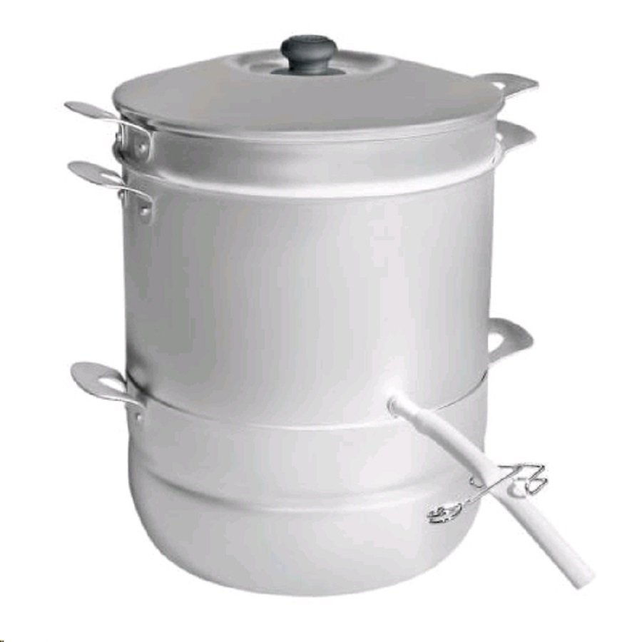 Материал : алюминий,Диаметр: 32 см,Толщина стенки: 1,2 - 1,5 мм Объем: 6 л,Изделие выполнено из пищевого алюминия, по весу не тяжелая, удобная, легко собирается и разбирается. Подходит для всех видов плит, кроме индукционной.