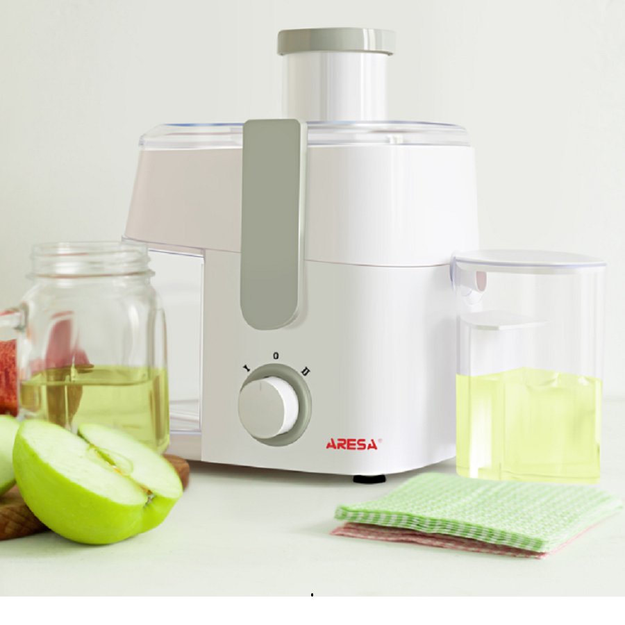 Соковыжималка электрическая Aresa AR-2501. Мощная центрифуга со скоростью 18000 об/мин эффективно отделяет жидкость от мякоти, кожуры и семян.2 скорости,Горловина шириной 60 мм,500Вт