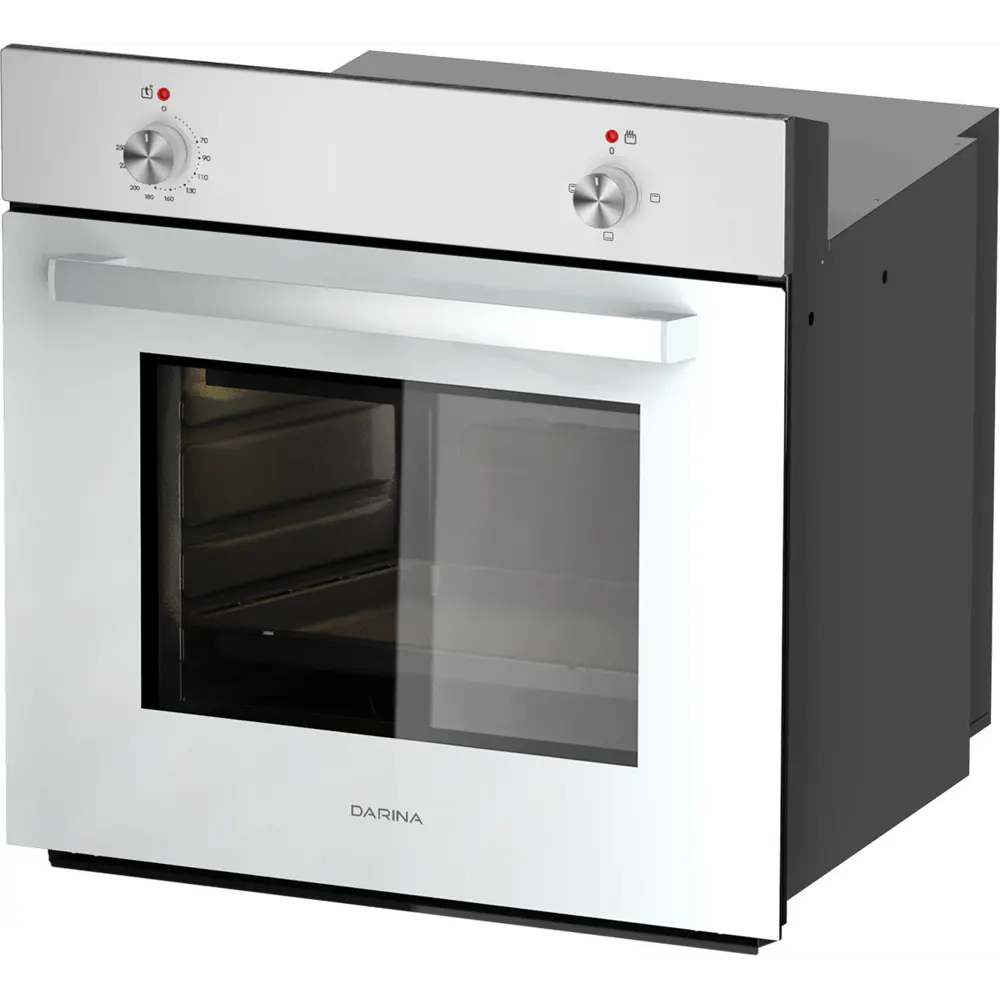 Встраиваемый жарочный бытовой электрошкаф DARINA BO 1700 W панель управления выполнена в белом цвете с поворотными ручками управления. Электрошкаф оснащен подсветкой. Единовременно потребляемая мощность – 2000 Вт.