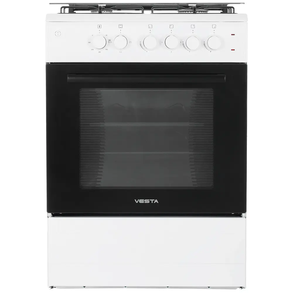 Комбинированная плита Vesta Valencia VKE 10-E с 3 газовыми и 1 электрической конфоркой оснащена кнопкой для быстрой активации электрического розжига. Эмалированные решетки выступают гарантом надежной фиксации посуды небольшого диаметра. Для регулировки интенсивности нагрева предусмотрены поворотные переключатели.
