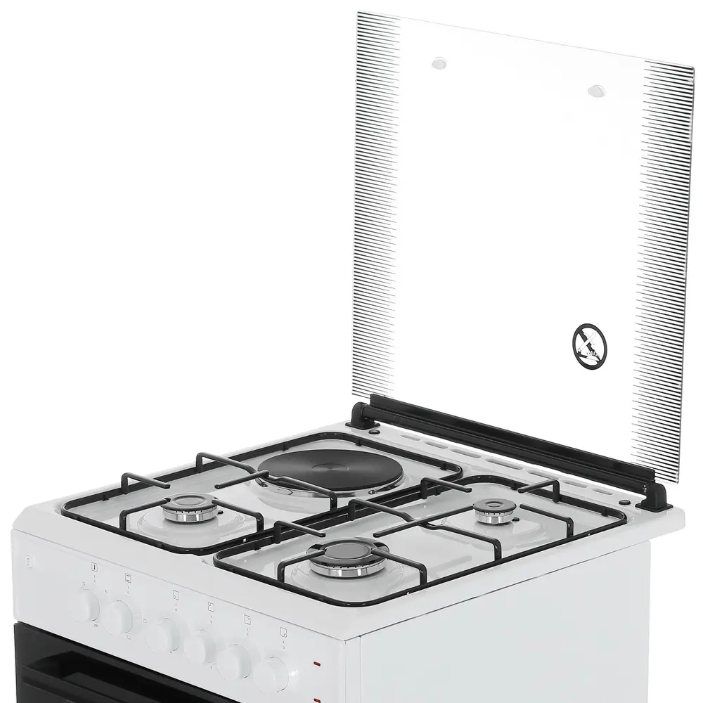 Конфорок:Газ.: 3 шт / Эл.: 1 шт; Объем духовки:65 л; Тип духовки:электрическая; Очистка:традиционная; Поверхность:эмалированная сталь