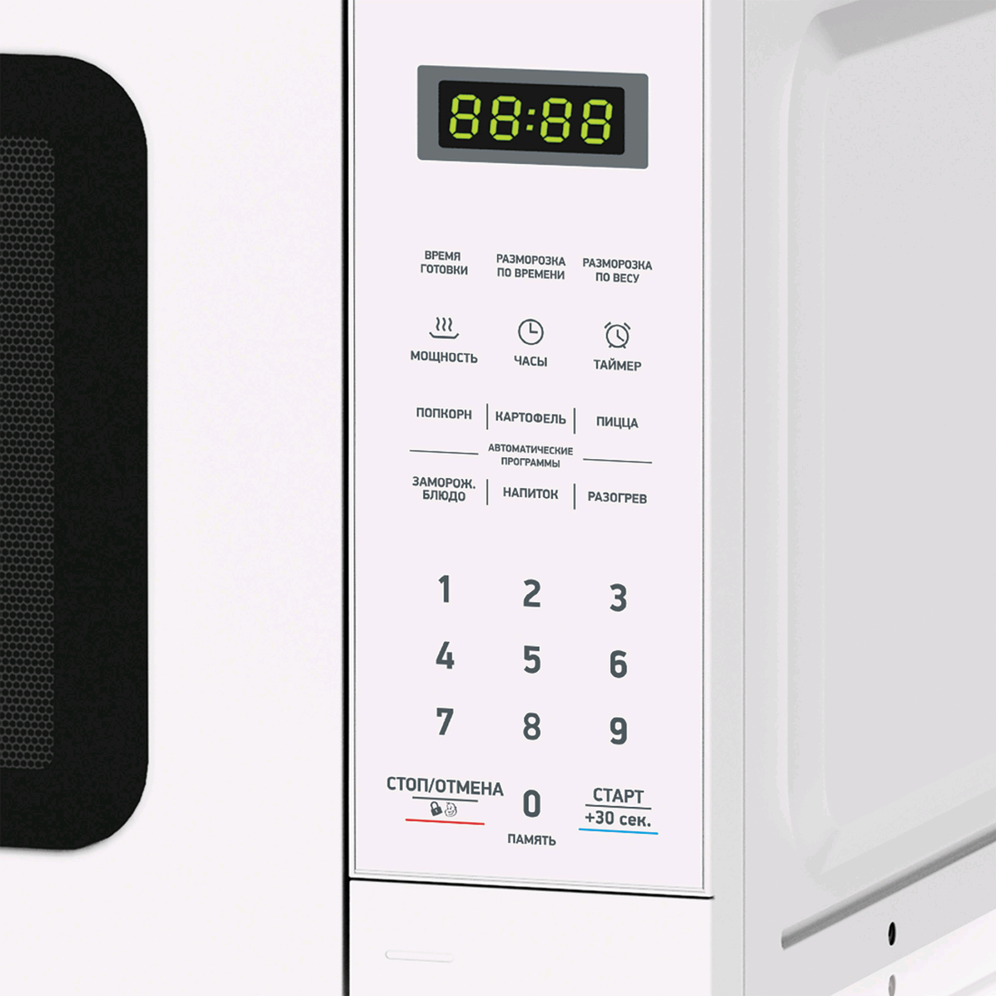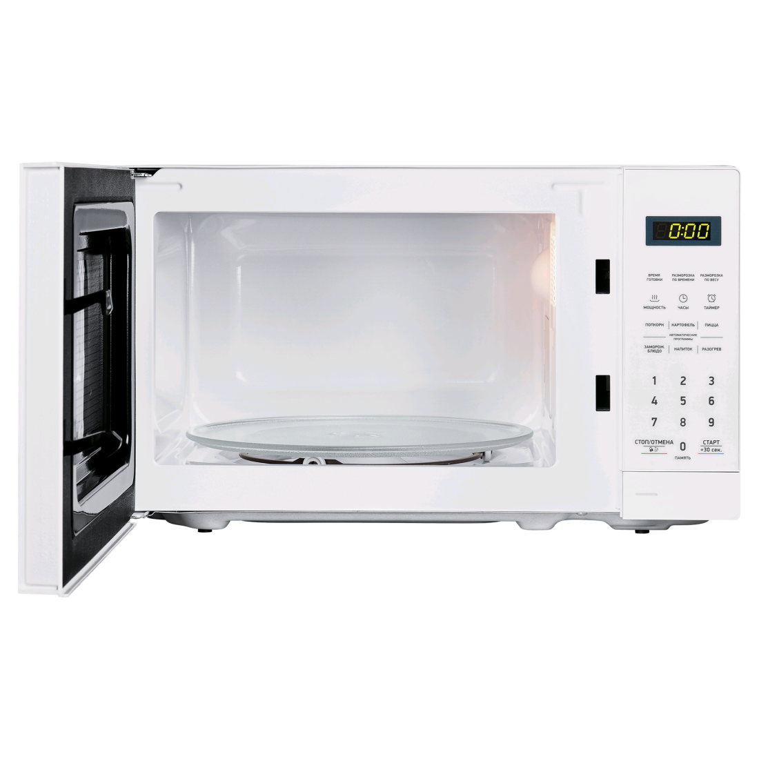 Полезный объем 20 л; Диаметр поворотного стола 25.5 см; Внутреннее покрытие эмаль; Тип управления электронный; Цвет белый; Защита от детей да