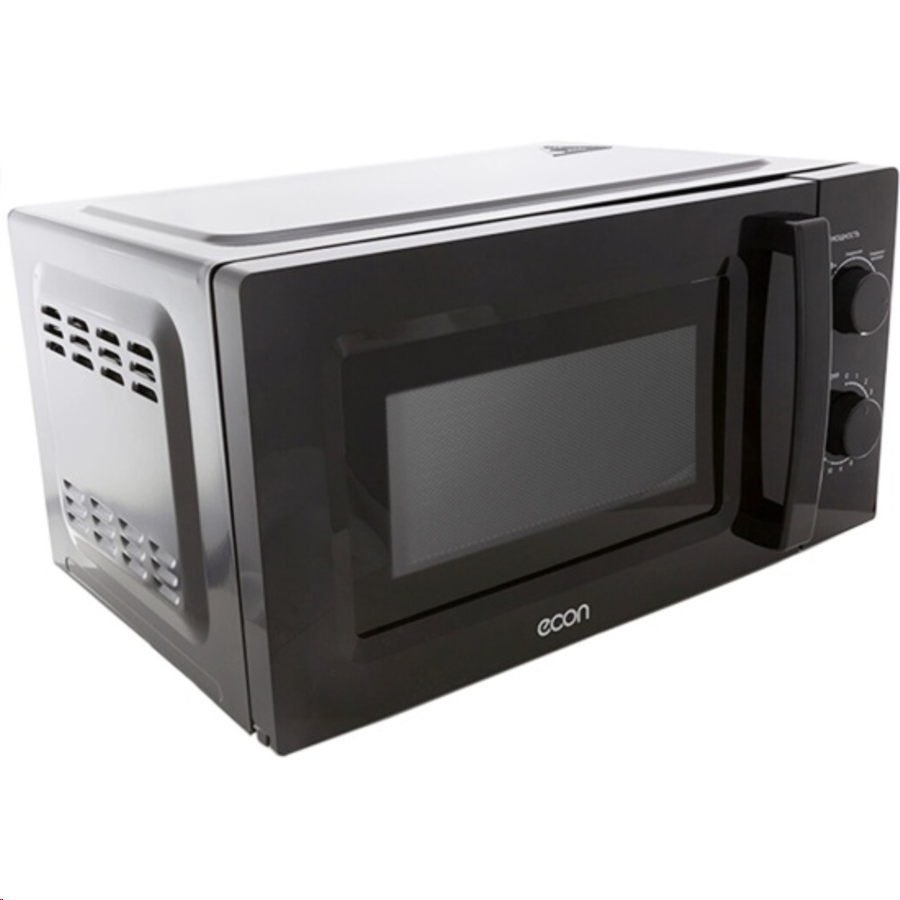 Микроволновая печь Econ ECO-2040M Black оснащена системой управления механического типа. Есть индикация включения, таймер и звуковой сигнал, оповещающий о завершении работы. Объем камеры — 20 л. Материалы, из которых изготовлена фронтальная панель, — металл и стекло. Дверца открывается налево, для этого есть ручка. Внутри установлен поворотный стол диаметром 24,5 см. Освещение обеспечивает лампа накаливания. Стенки покрыты эмалью. Максимальная мощность микроволн — 700 Вт. Размеры устройства — 24х45х32,7 см, вес — 10,3 кг.