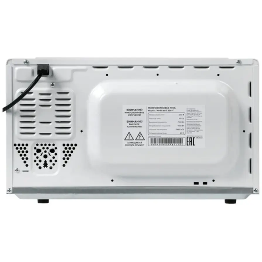 Тип отдельностоящая model ECO-2054T Блокировка от детей есть Дисплей есть Мощность СВЧ 700 вт Диаметр поворотного стола 25.5 см Автопрограммы авторазморозка Объем 20 л