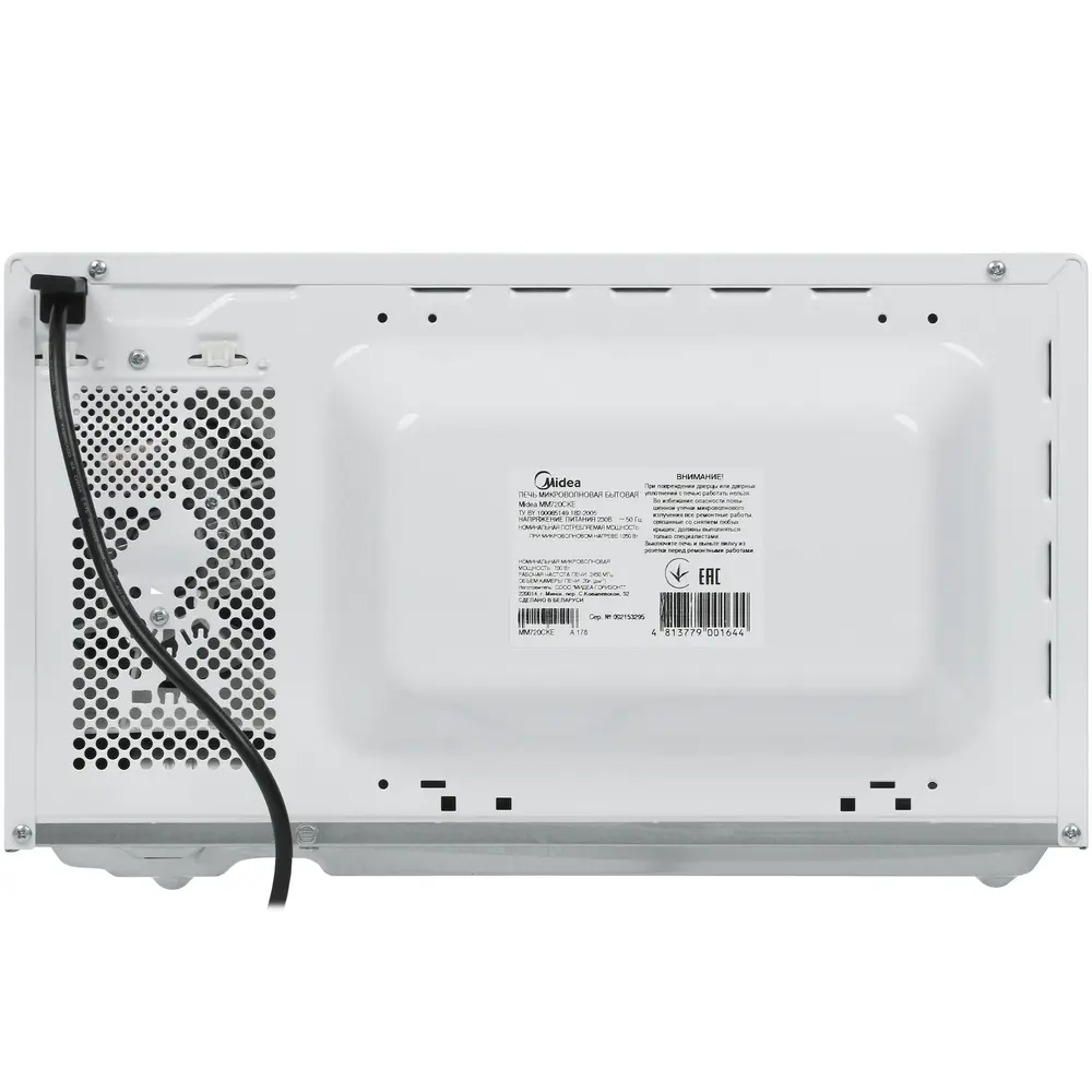 Микроволновая печь Midea MM720CKE представлена в белом корпусе размерами 44x25.82x33 см и устанавливается на ножки. Внутреннее покрытие камеры выполнено из эмалированной стали, что позволяет легко очищать прибор от загрязнений. Вместительность камеры составляет 20 л.