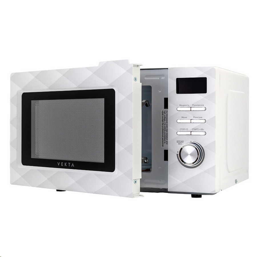 Микроволновая печь VEKTA TS720FTW – яркое решение для стильной кухни. Оригинальное внешнее оформление печи с крупным, фактурным геометрическим рисунком придает интерьеру объемность и тактильность. Для создания ощущения монолитной глянцевой поверхности была использована скрытая ручка, которая не нарушает ритмичности рисунка фасада. Микроволновая печь TS720FTW позволяет не только разогревать и размораживать блюда, но и программировать приготовление, что делает ее полноценной альтернативой сразу нескольким кухонным приборам.