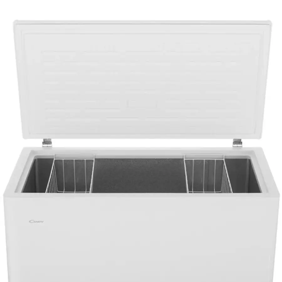 Морозильный ларь Candy CCM301R — вместительный морозильный ларь объёмом 301 литр, в котором одновременно можно разместить много продуктов длительного хранения. Ларь такого объёма придётся к месту в больших семьях, где часто нужен постоянный запас продуктов, поможет дачникам сохранить урожай. Можно использовать его и в торговых точках. Часть продуктов (те, что требуются чаще) удобно хранить в двух подвесных корзинах. Если корзины не нужны — их можно легко убрать или, при необходимости, снять для очистки. Бесперебойную работу обеспечивает надёжный компрессор с низким энергопотреблением и уровнем шума (класс энергоэффективности — А, уровень шума — 40 дБа). Благодаря механическому управлению со светодиодным индикатором максимально просто установить нужную температуру перед пополнением морозильного ларя продуктами.