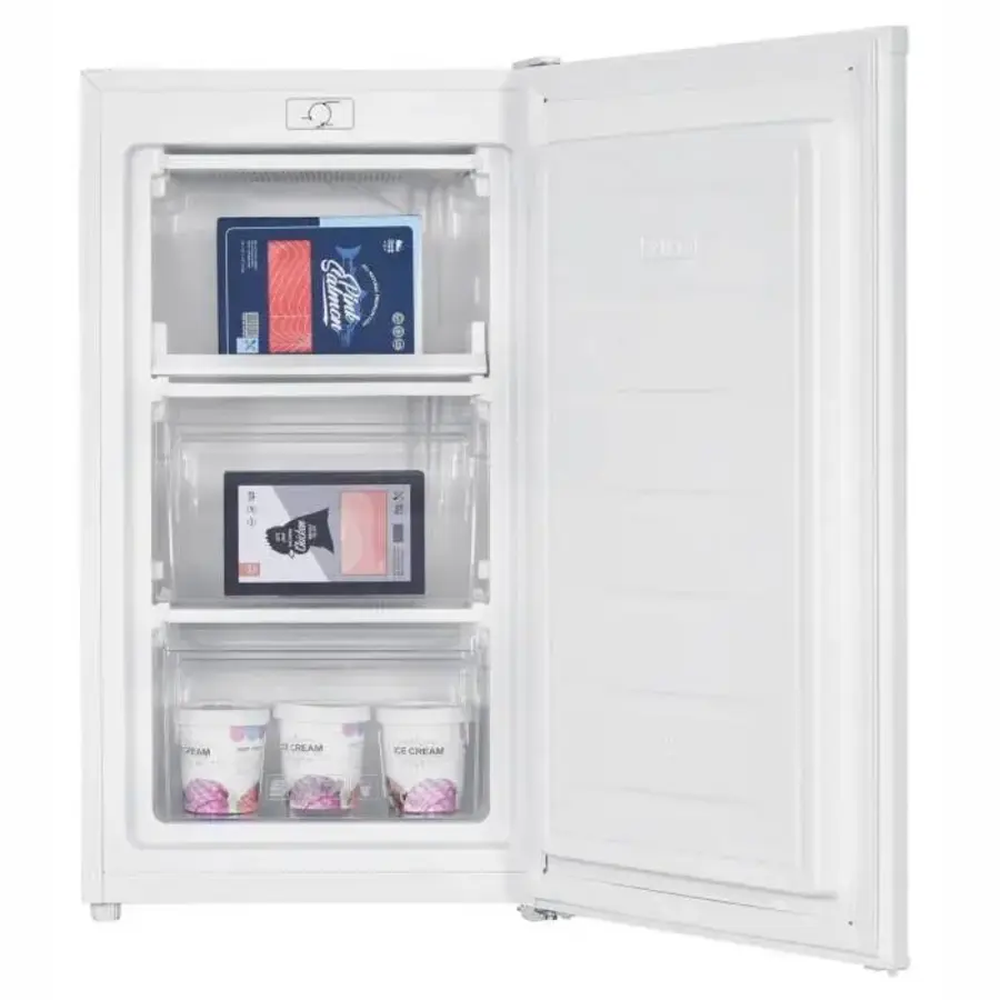 Система охлаждения: De Frost; Класс энергоэффективности: А+; Объем морозильной камеры: 54 Л; LED подсветка: Отсутствует; Ящик для продуктов: Отсутствует; Полки для продуктов: 2; Управление: Механическое; Климатический класс: SN, ST; Компрессор: 1; Ручка двери: Встроенная; Дверь: Перенавешиваемая; Потребляемая мощность: 0,441 кВт/час; Страна происхождения: Китай; ДxШxВ: 450x480x850 мм; Вес: 23 г. Небольшой и надежный морозильник с системой Dе Frost. Удобен для небольших пространств, офисов. Ручное электронное управление, ручка спрятанная в двери . Функция суперзаморозки. Морозильное отделение: 2 полки, 3 секции.