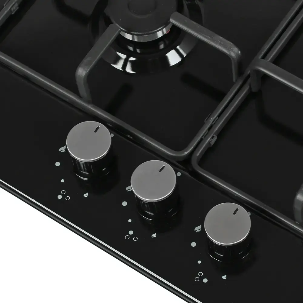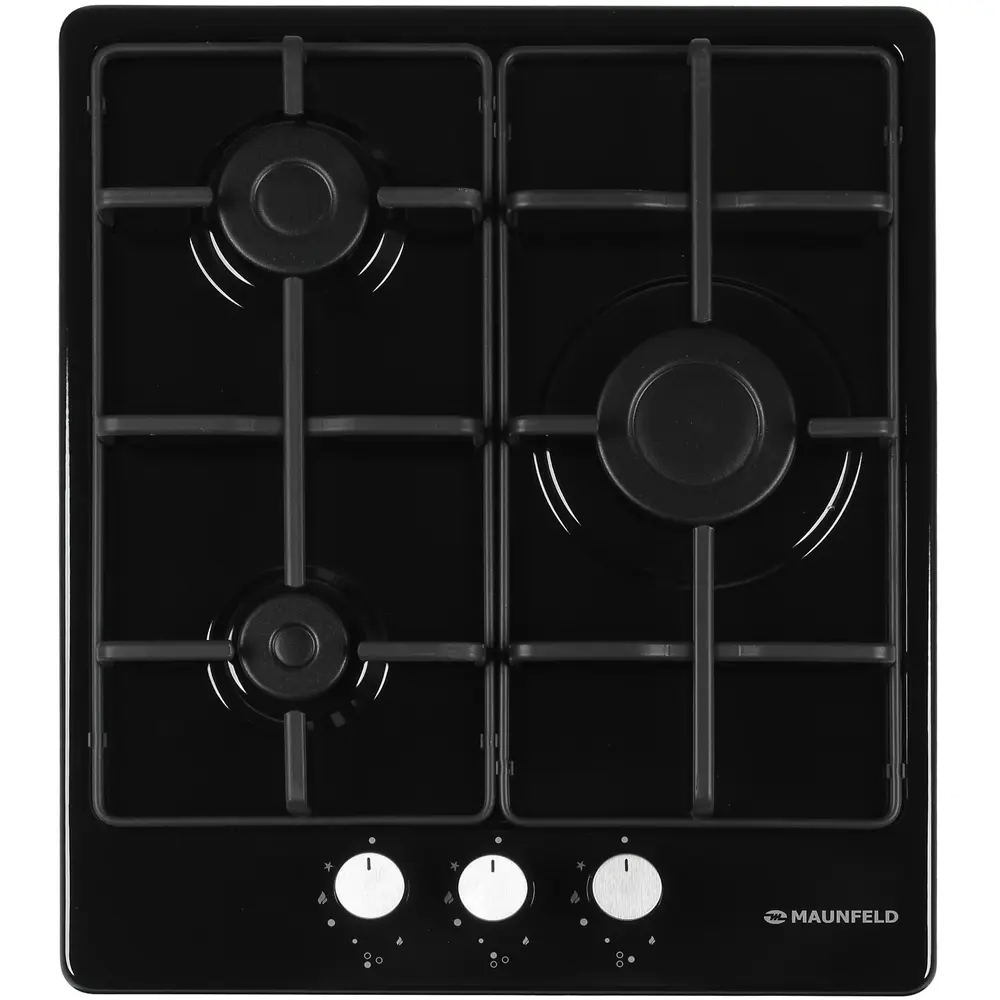 У газовой варочной поверхности MAUNFELD EGHE.43.3STS-EB предусмотрено наличие 3 конфорок SABAF, конструкция которых позволит экономно расходовать газ. При этом каждая конфорка имеет свою мощность (1 кВт, 1.7 кВт, 2.6 кВт). Разжигать пламя в конфорках можно без применения спичек. Для этого в них встроен механизм электроподжига, активация которого осуществляется поворотом переключателя. Сами переключатели обладают удобной круглой формой и снабжены информационными указателями.