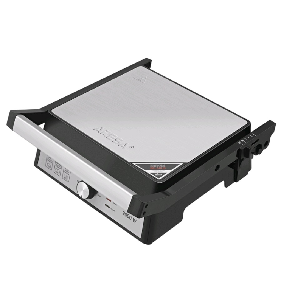 Мощность: 1800-2000 Вт,2 несъемные панели с антипригарным покрытием,Рифленая поверхность панелей для равномерной прожарки,Каналы на рабочих панелях для стекания жира в поддон,Размер рабочей поверхности: 290*260 мм,Регулировка крышки,Длина шнура: 75см,Фиксатор крышки,Защита от перегрева,Градус открытия: 90° / 180°,Световой индикатор питания,Световой индикатор нагрева и готовности к выпеканию,Mатериал корпуса: термостойкий пластик со вставками из нержавеющей стали,Съемный поддон для жира,Нескользящие ножки,Регулировка температуры нагрева,