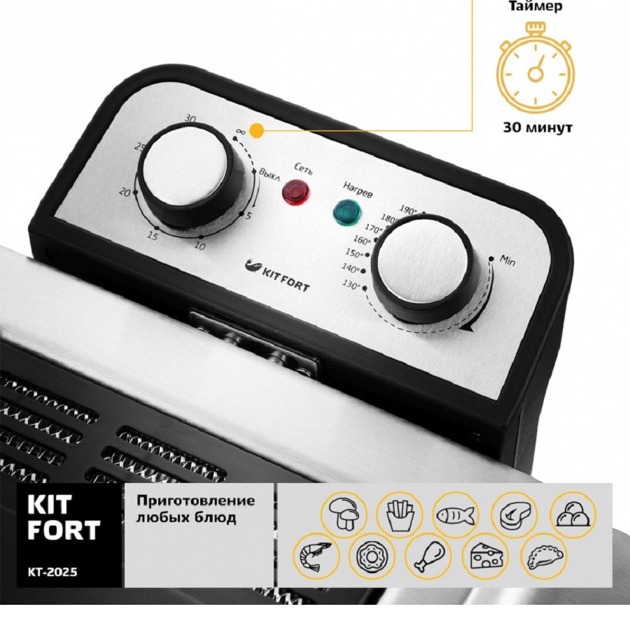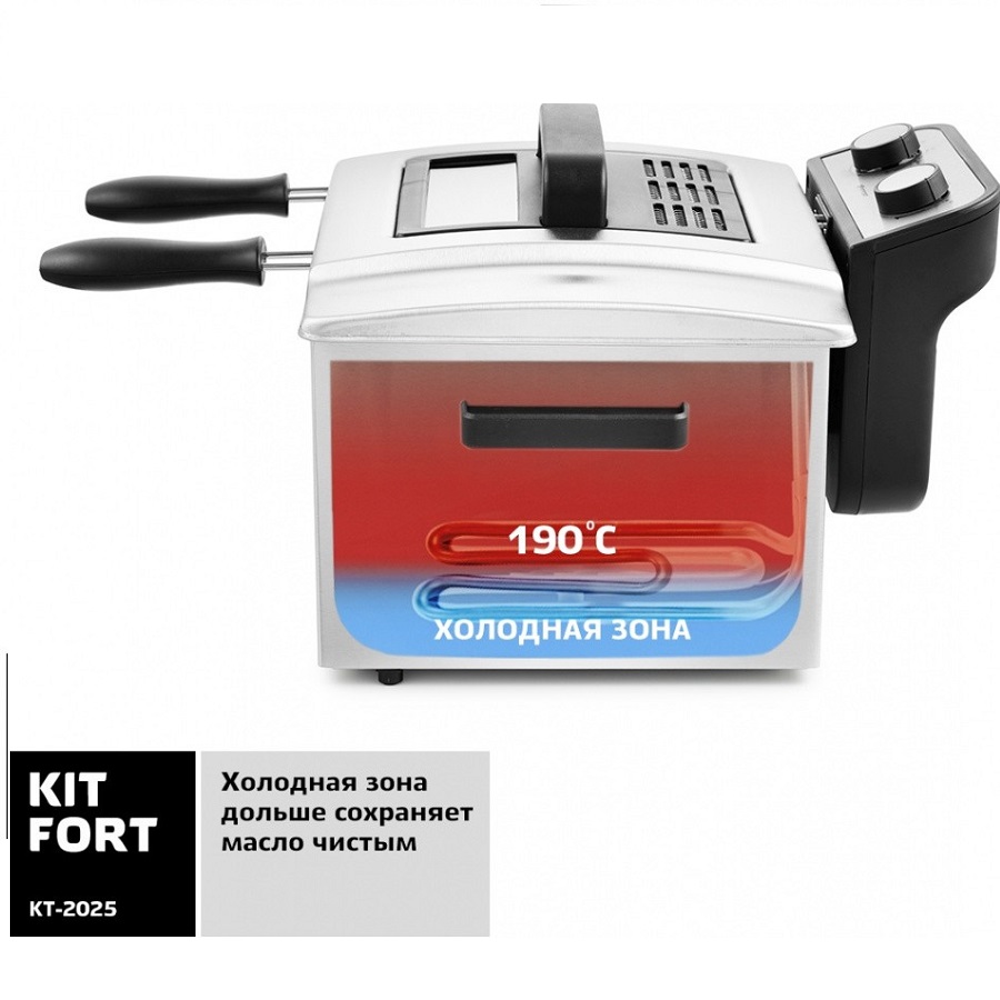 Продукты во фритюрнице Kitfort КТ-2025 готовятся быстрее, чем на сковороде из-за короткого воздействия высокой температуры со всех сторон.Фритюрница укомплектована тремя корзинами для жарки — одной большой и двумя маленькими. Малые корзины вы можете устанавливать во фритюрницу одновременно.Технология «Холодная зона» предотвращает подгорание мелких кусочков продуктов. Масло будет дольше сохраняться чистым, и его можно использовать до 10-15 раз повторно. Крышка оборудована смотровым окошком.Объем:5 л Вместимость :1.2 кг.Мощность:3270 Вт.