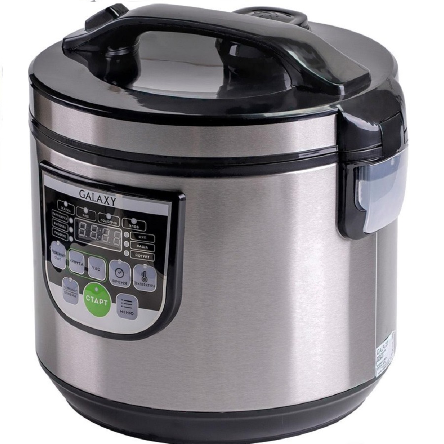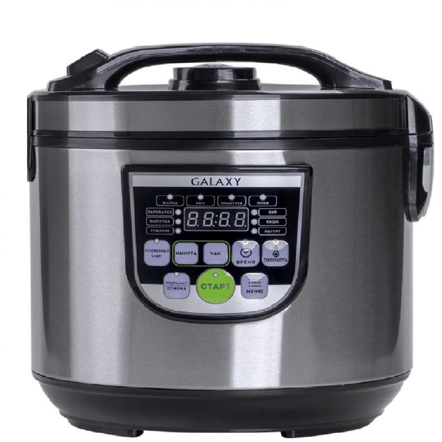 * Производитель: Galaxy * Цвет: серебристый * Потребляемая мощность: 900Вт * Объем: 5л * Покрытие чаши: антипригарное * Материал корпуса: пластик * Управление: электронное * Дисплей: Да * Защита: от избыточного давления *