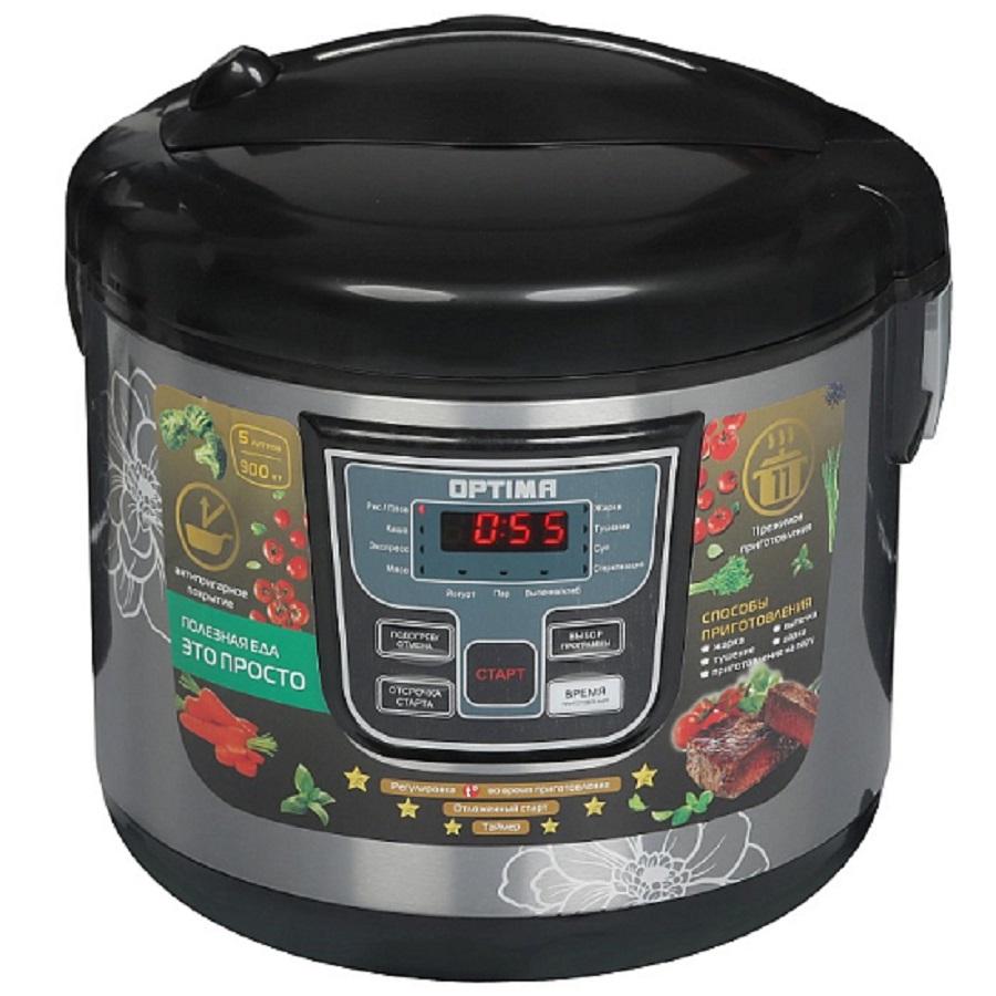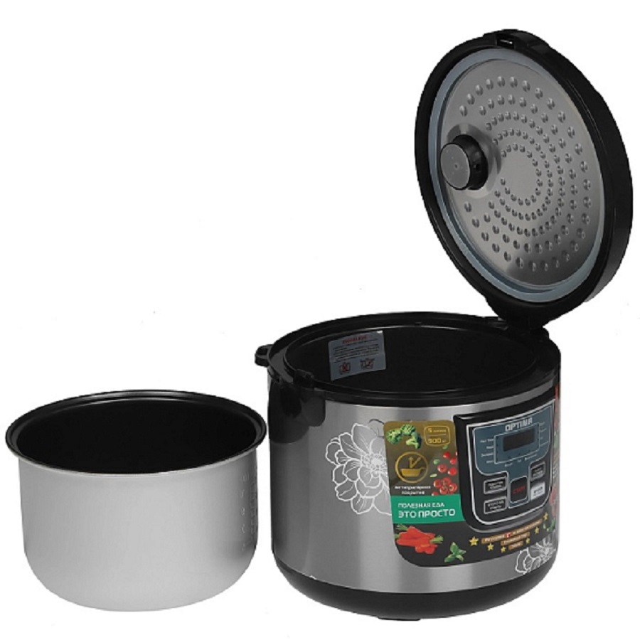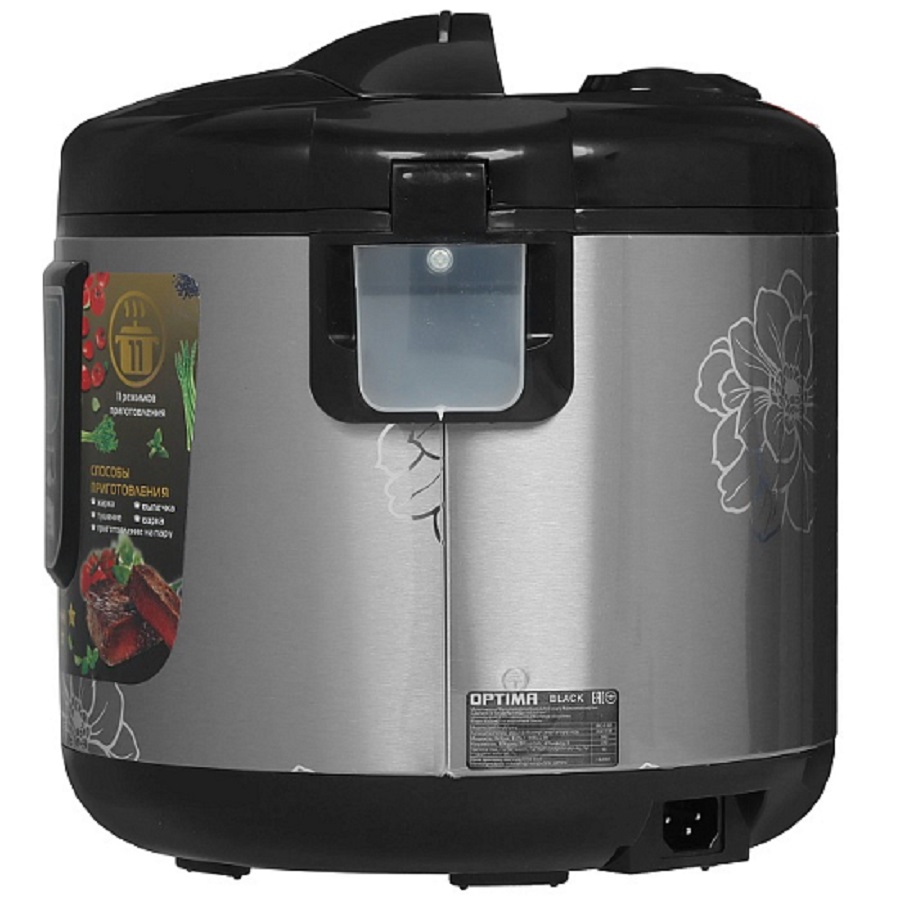 Мультиварка Optima MC-5101 2001158 примечательна наличием 11 режимов приготовления блюд, стильным внешним видом, корпусом из нержавеющей стали и экологичного черного пластика, наличием прозрачной крышки для визуального контроля. В комплекте к мультиварке идёт внутренняя чаша, корзина для варки на пару, мерный стакан, лопатка для помешивания. Мерный стакан выполнен из полупрозрачного пластика со шкалой-дозировкой до 120 грамм и шкалой заполнения по частям стаканчика. Корзинка для варки на пару, половник и лопатка выполнена из белого термостойкого пластика.