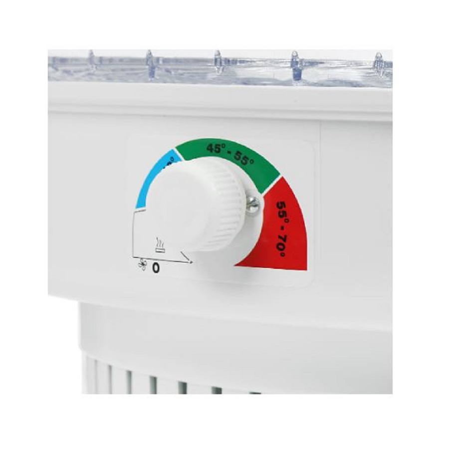 На корпусе представленной модели расположен поворотный переключатель, посредством которого осуществляется выбор подходящей температуры в пределах от 30 до 70 градусов.