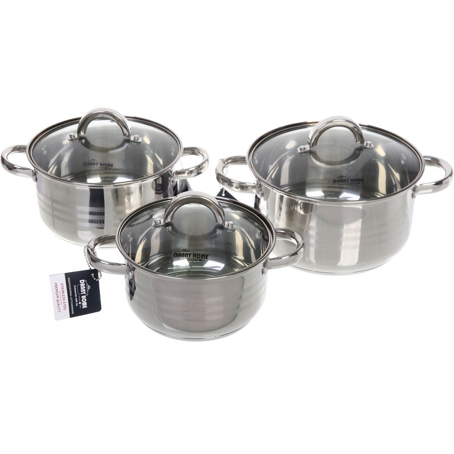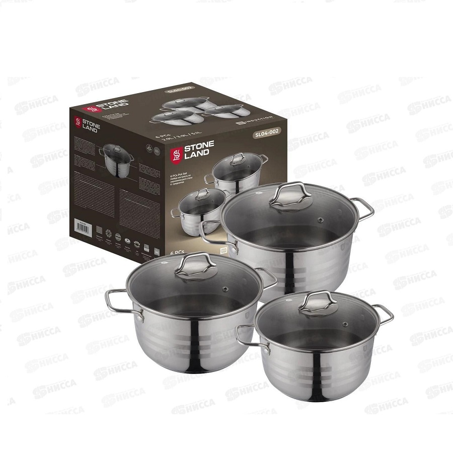 Набор посуды 6 предметов STONELAND SL04-003 (кастрюли 3.9л+5.1л+6.6л), нержавеющая сталь, индукционное дно, серебристы