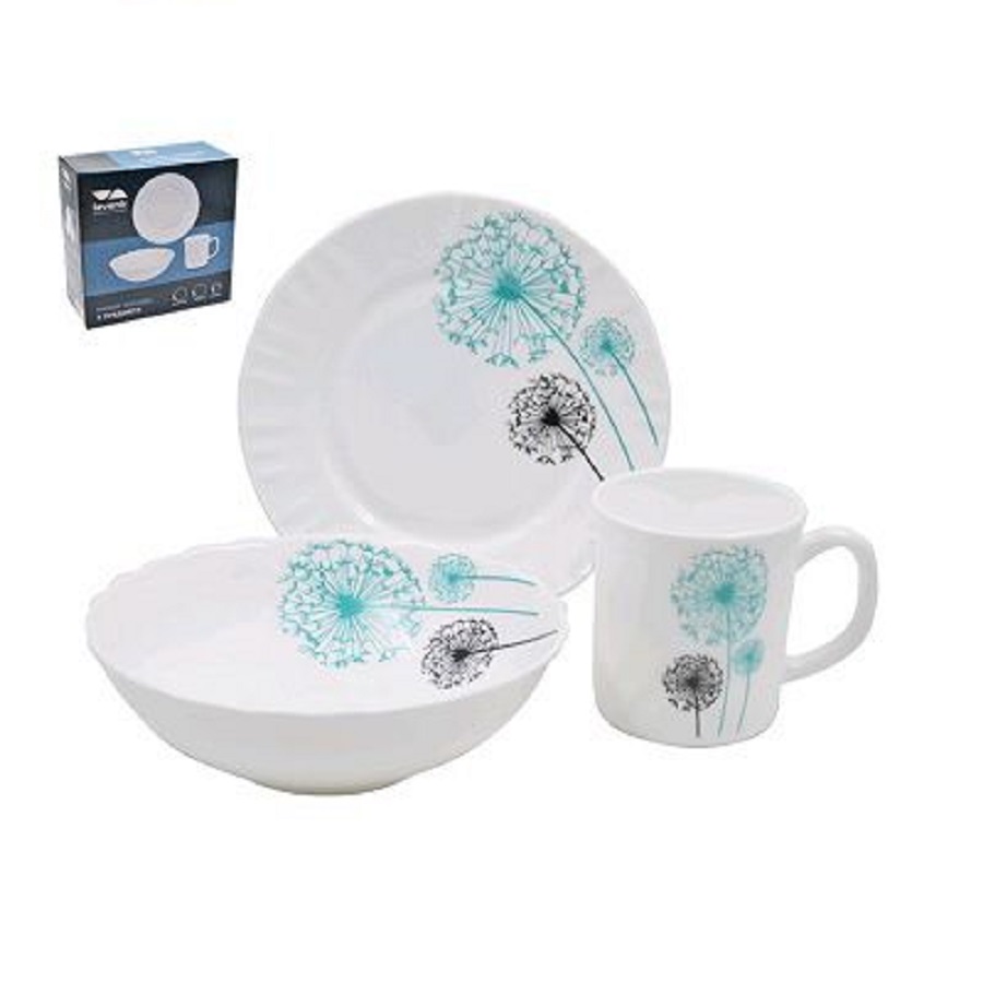 Набор для завтрака 3PCB 7007 «Одуванчики» состоит из тарелки, кружки и салатника. Набор изготовлен из стеклокерамики Lavenir