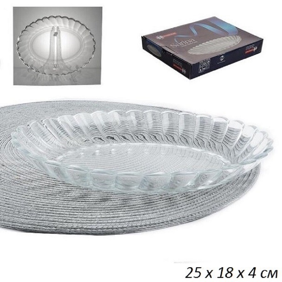 Тарелка овальная 25*18 см ПУ SARINA 822.Цвет: прозрачный.Форма: овальная.Можно мыть в посудомоечной машине.Можно использовать в СВЧ-печи.для сервировки нарезки, сыра, закусок, фруктов.