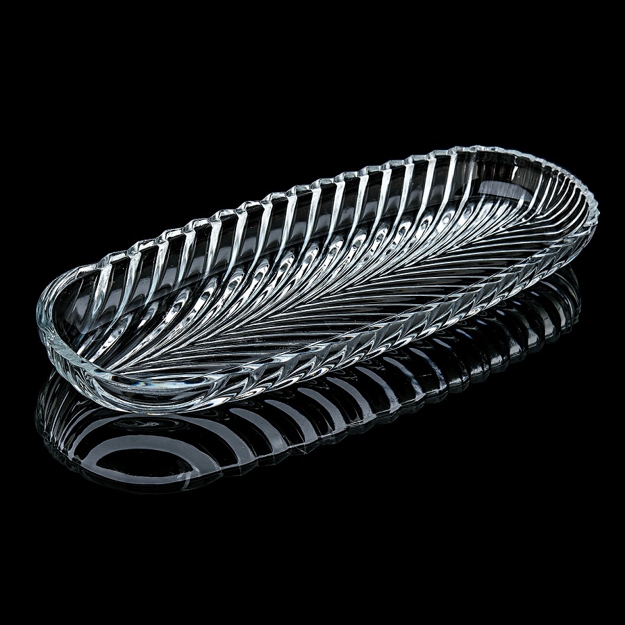 Тарелка овальная 28см ПУ SANTA PL1258GCL упрочненное стекло в подарочной упаковке.материал — прозрачное стекло, форма — овальная, без крышки, с рельефным украшением, для сервировки нарезки, сыра, закусок, фруктов.