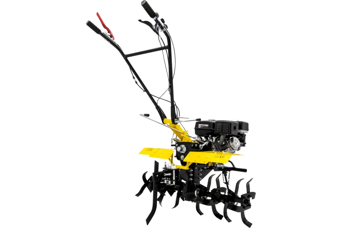 Мотоблок обладает системой защиты, которая делает его полностью безопасным для оператора и продлевает срок службы отдельных деталей даже при большом объёме работ. Двигатель оснащен автоматическим регулятором частоты вращения, что упрощает работу оператора. Широкие крылья защищают пользователя от попадания крупных комьев земли. Прочный кожух приводных ремней гарантирует безопасность оператора и самого устройства.